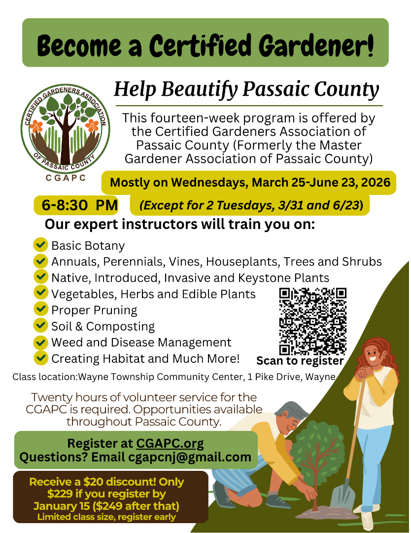 • 10% discount on plants at Glenwild Garden Center, Blooms of Wayne, Riverside Nursery, Urban Flower Market, Glenn Pond Nursery (and get a complimentary candy at Laurie’s Candies) and Mike’s Feed Farm.