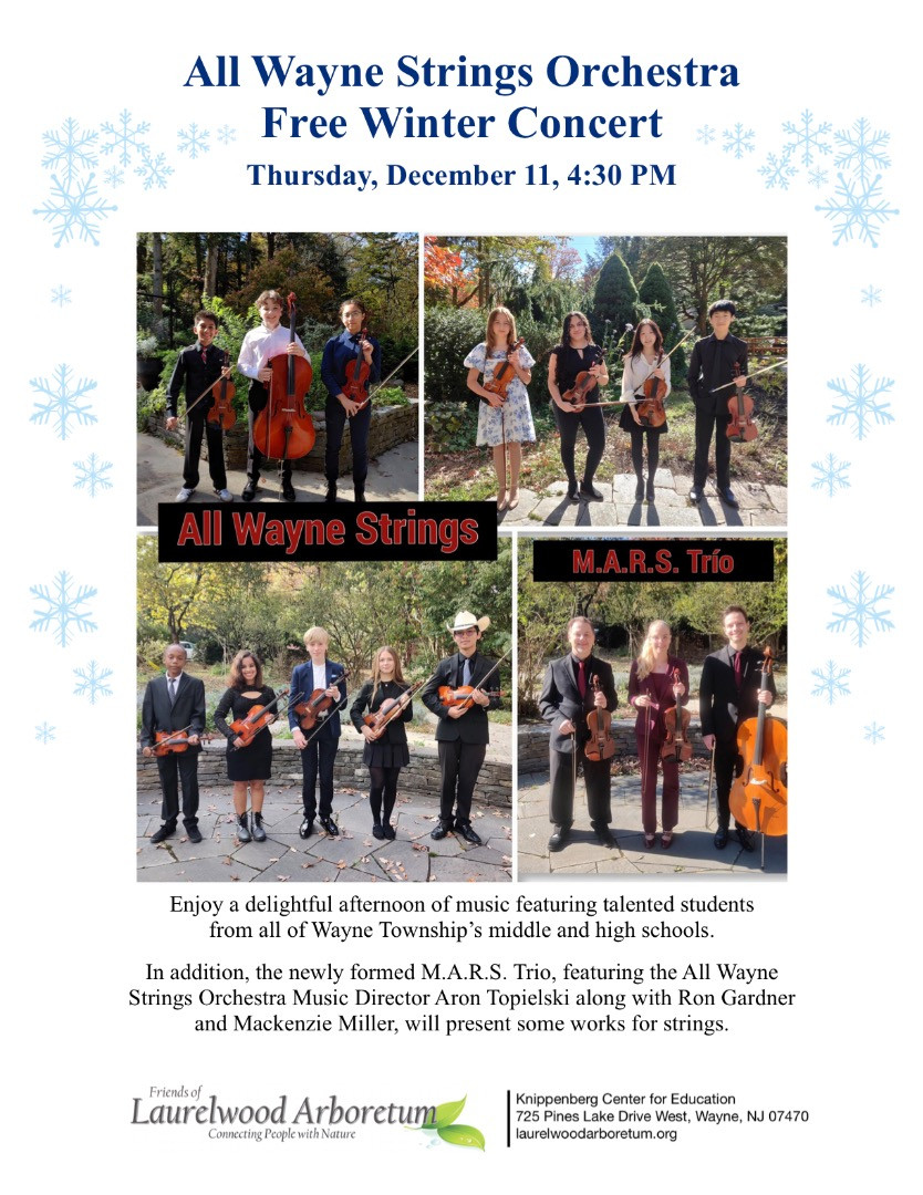 To order a gift membership, please send a check made out to Friends of Laurelwood Arboretum for $25 to Box 2433, Wayne, NJ 07474-2433 along with the name and address of the gift recipient, who will receive a membership card and benefits information. |