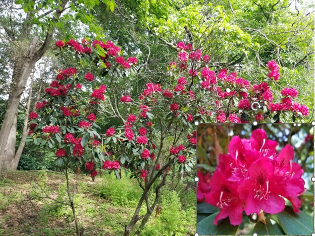 Venture through the wooden trellis and enter a peaceful canopy of trees. In springtime the path is lined with huge rhododendrons bursting with color. One specimen, ‘Paul Vossburg’ with its strong red color is sure to stop you in your tracks at the south end of the trail.
