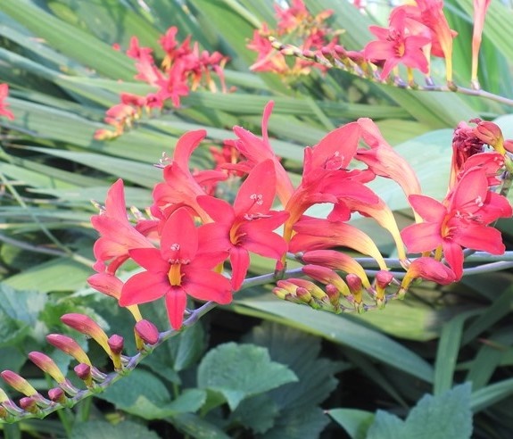 Common name: montbretia Size: 2 gal. Full sun to part shade Perennial
