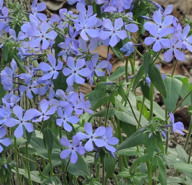 Phlox divaricata grows in shady woodland conditions. Less than one foot tall, it creates a lovely groundcover that blooms with blue flowers in spring.